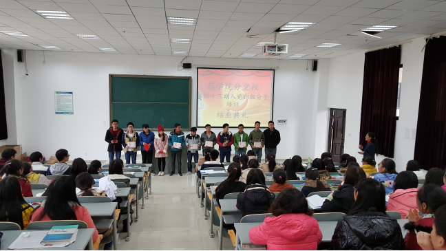首先,党委副书记徐贵荣对本期党校培训的基本情况进行了简单的介绍:本期培训班共111名学员,78名学员顺利结业,按照入党积极分子培训优秀学员的评选要求,评选出班朝旭、罗才荣等11名为优秀学员。党委书记席晓岚为11名优秀学员颁发了荣誉证书,团委书记雷豪为学员代表颁发了结业证书。