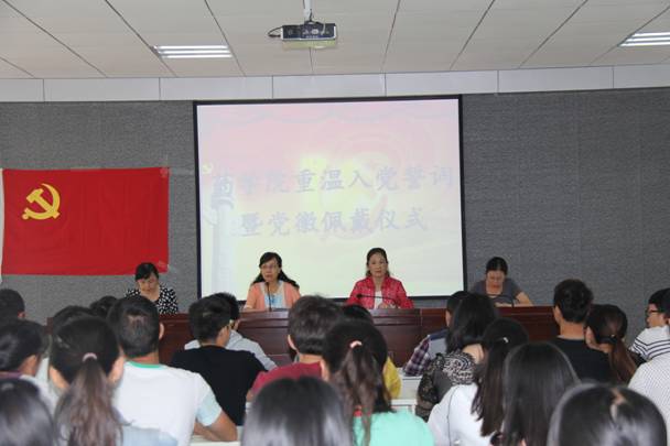 在庆祝中国共产党成立九十四周年之际,taptap点点官方网站党委践行“三严三实”教育活动--“重温入党誓词、佩戴党徽暨重学党章”专题活动于7月6日在药学楼6楼多功能厅隆重举行,taptap点点官方网站党委委员和40多名师生党员参加了大会。taptap点点官方网站党委书记席晓岚同志主持大会。