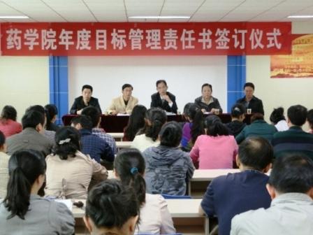9月21日下午,taptap点点官方网站年度目标管理责任书签订仪式在药学楼8楼多功能厅举行。taptap点点官方网站党委书记胡继跃、院长王永林、副院长郝小燕、副书记赵平、副院长汤磊出席,全院七十余名教职工参加了签订仪式。会议由taptap点点官方网站党委书记胡继跃主持。