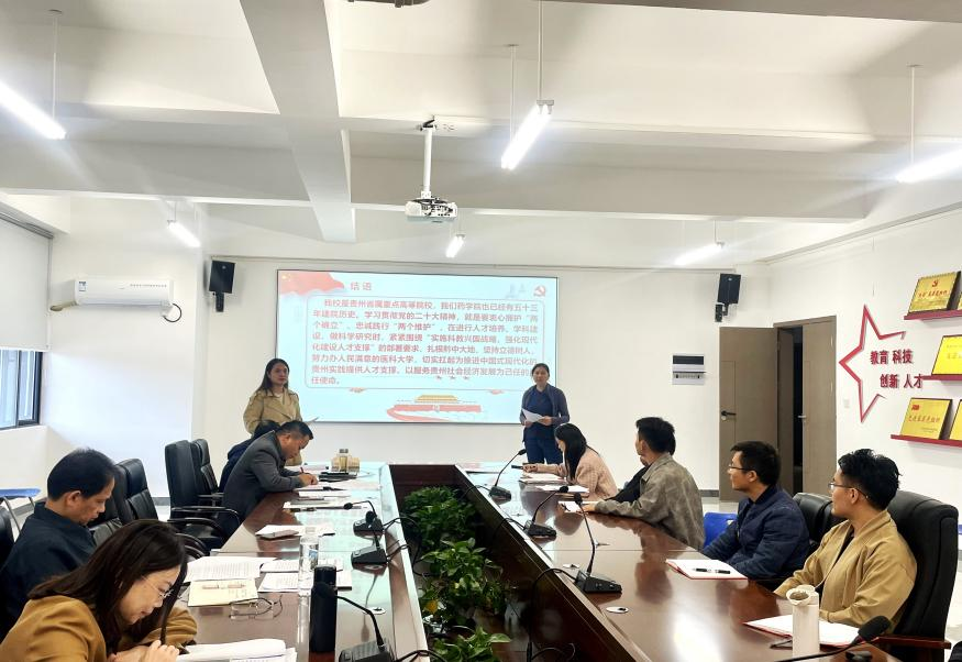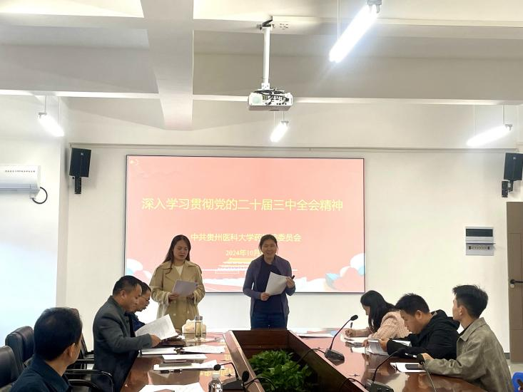 为深入学习宣传贯彻党的二十届三中全会和省委十三届五次全会精神,把思想和行动统一到全会精神上来。根据《关于在全校开展党的二十届三中全会精神宣讲工作的通知》(贵医党通〔2024〕67号)文件精神。taptap点点官方网站党委于2024年10月8日在云漫湖校区致知楼5楼会议室,开展了“理论宣传二人讲”专题宣讲。学院党政主要领导、科室负责人、教研室负责人、支部书记参加了此次宣讲。
