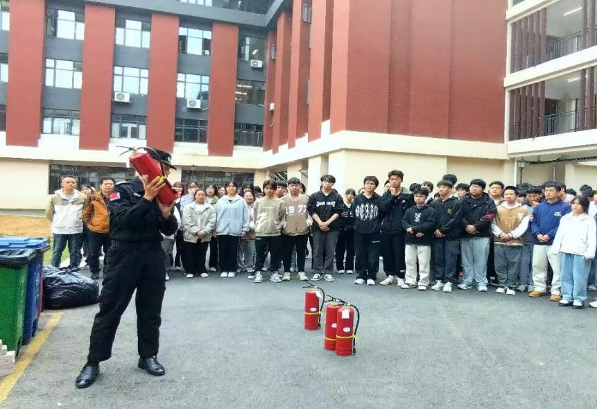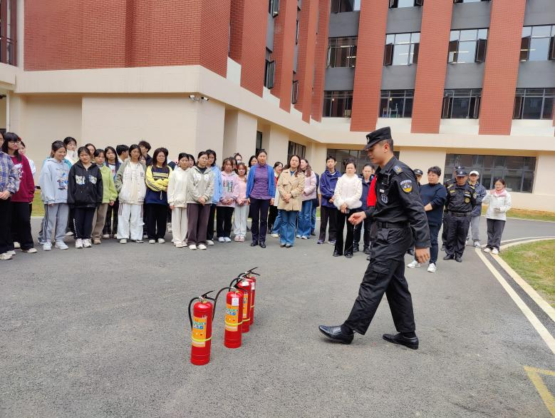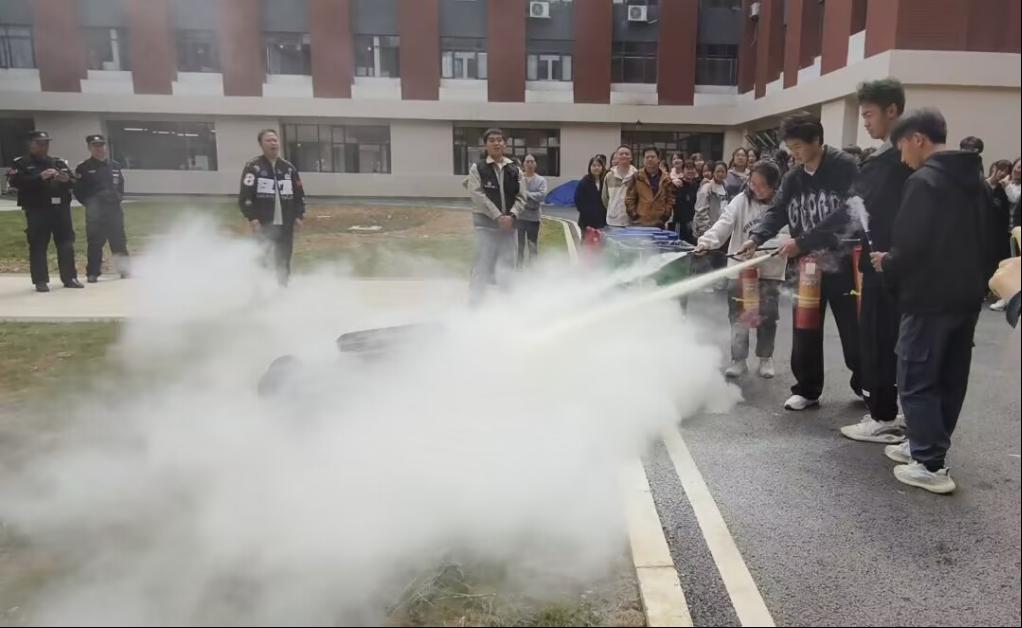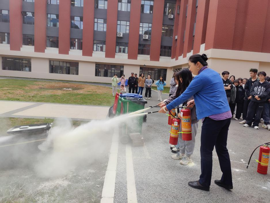 待消防车处理完火灾模拟现场后,专业的消防人员为师生们讲授了如何提高防火安全意识与正确的逃生方法,并教授消防器材的正确使用方法。师生们悉心聆听消防知识,并在消防人员的指导下学会使用灭火器。