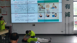 7月11日下午,队伍结合自身专业优势,进行以“‘救’在你身边”为主题的急救常识宣讲。主持人讲解的同时,志愿者进行心肺复苏法、海姆立克法等动作演示。