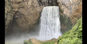 7月12日下午,团队向羊皮洞出发,搜寻美景素材。茂密的树林,陡峭的山间小路,索风湖的游轮,湍急而下的流水,沿途往上走,来到了声势浩大的瀑布之下。鲜丽的服装具有别味,是少数民族的姑娘约着三五好友游玩山水。只见山风吹过,裙摆外圈的饰品相互碰撞,清铃声回荡于山涧间。我们邀其一起合影,将画面定格