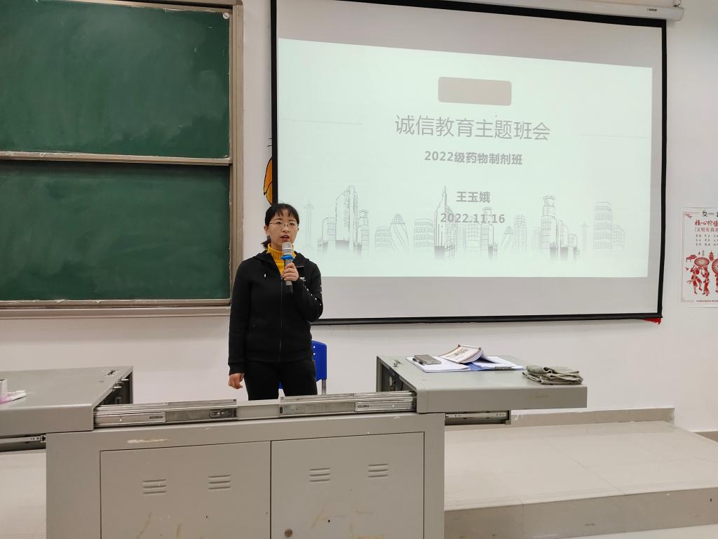 为培养学⽣“诚信”的优良品质,弘扬诚实守信这⼀中华民族的传统美德,班主任王玉娥老师召集2022级药物制剂班全体学生开展了“诚信教育”主题班会。