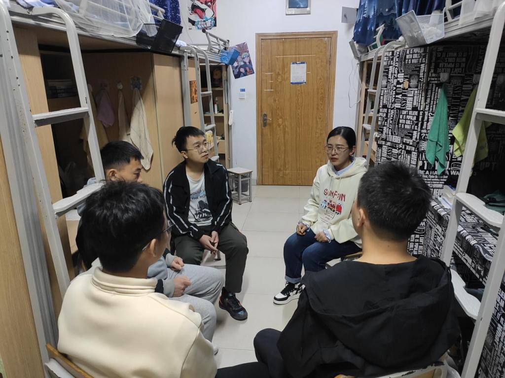 班会开始,沈莹老师介绍了本次班会召开的目的与主题思想“敞开心扉,拥抱快乐”的意义;为进一步了解每位同学的心理状态,向同学们发放心理健康调查问卷并带领大家如实地填写相关内容,提醒同学要注意自己的心理健康问题,正视心理变化,积极地去释放缓解心理压力;过程中,沈老师与大家融洽交谈,不断地询问生活中及学习中所遇到的问题,通过讲述老师自己的经历为同学们提供有用的建议,激励大家勇于争取,奋力向自己的目标靠近;随后,沈老师细心地与国家帮扶对象田欢同学交谈,特别关注他在经济上的情况,在国家及学校的全力保障下,为同学们提供了一个良好的学习与生活环境,让每位同学都得以在知识的海洋里自由探索;最后,沈老师到9332寝室参加了同学们的座谈会,了解他们生活中的相关问题。