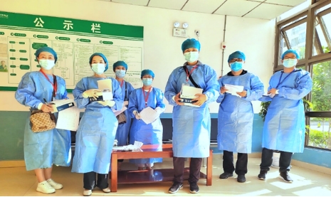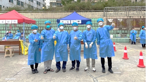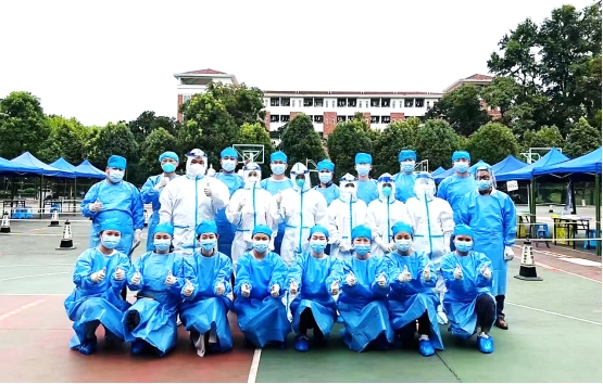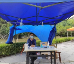 在北校区,药物制剂重点实验室李勇军主任也带领实验室的老师奋战在抗疫的第一线。按照学校工作安排,他们参与研究生院在北校区学生的防疫任务。接到任务整个实验室的老师们都积极报名参加,这一刻,他们舍小家顾大家,面对疫情,没有豪言壮语,只有冲锋向前的勇敢和决心。整个团队分工合作进行查寝摸排学生情况、了解他们的学习生活困难、身体健康情况、做好静默期的心理疏导,并及时将学校的信息传到到位,不遗漏任何一个细节,核酸检测、抗原自查做到不漏一人,把最基层的工作抓实抓牢,为学校疫情防控工作尽心尽责。