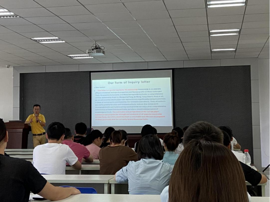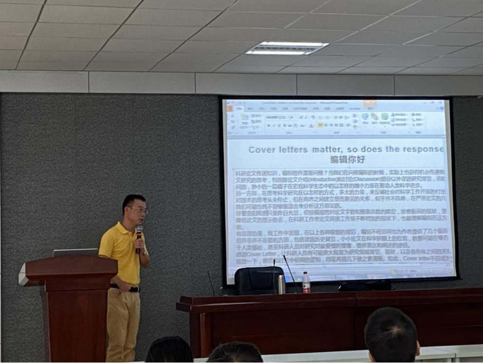 陈阳博士结合工作经验从投稿信、修稿信到催稿信,进行了关于学术论文Cover Letter的深入交流。Cover Letter目的是为研究领域背景、现状以及各客体之间的关系,梳理前言和讨论中模糊的逻辑。Cover letter不仅成为除正文中精美文字图表以外另一项编辑对论文作出正面评价的依据,也可能为研究者今后研究路线与研究方向的凝练提供较好的逻辑思路。讲座结束后,参会的老师和同学与陈阳博士进行了深入的沟通交流,报告取得圆满成功。