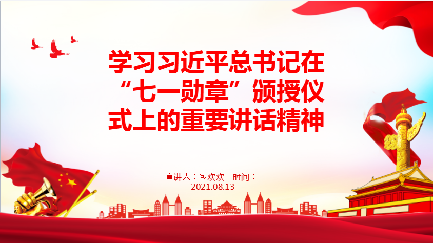 党课由“学习习近平总书记在“七一勋章”颁授仪式上的重要讲话精神”、“学习先进典型的高尚品质和崇高精神”两个部分组成。习近平总书记强调,一百年来,我们党矢志践行初心使命,团结带领人民开辟了伟大道路、建立了伟大功业、铸就了伟大精神、积累了宝贵经验,在中华民族发展史和人类社会进步史上写下了壮丽篇章。一百年来,一代又一代中国共产党人,为赢得民族独立和人民解放、实现国家富强和人民幸福,前仆后继、浴血奋战,艰苦奋斗、无私奉献,谱写了气吞山河的英雄壮歌。“七一勋章”获得者,就是各条战线党员中的杰出代表。在他们身上,生动体现了中国共产党人坚定信念、践行宗旨、拼搏奉献、廉洁奉公的高尚品质和崇高精神。