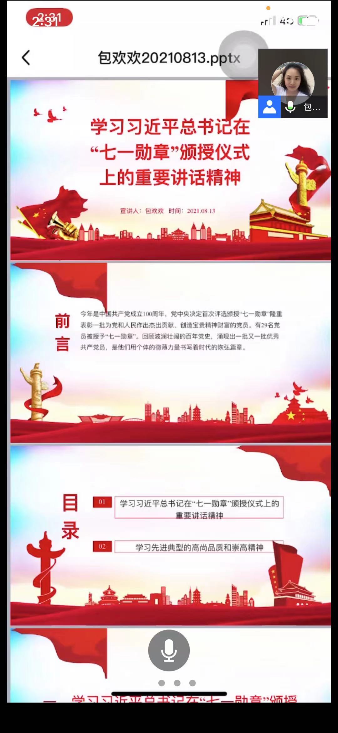 2021年8月13日下午,taptap点点官方网站党委副书记包欢欢进行了学习习近平总书记在“七一勋章”颁授仪式上的重要讲话精神专题党课宣讲。党课以腾讯会议的形式进行,学院领导班子成员、党委中心组成员、副科级以上干部、支部书记聆听了此次专题党课。