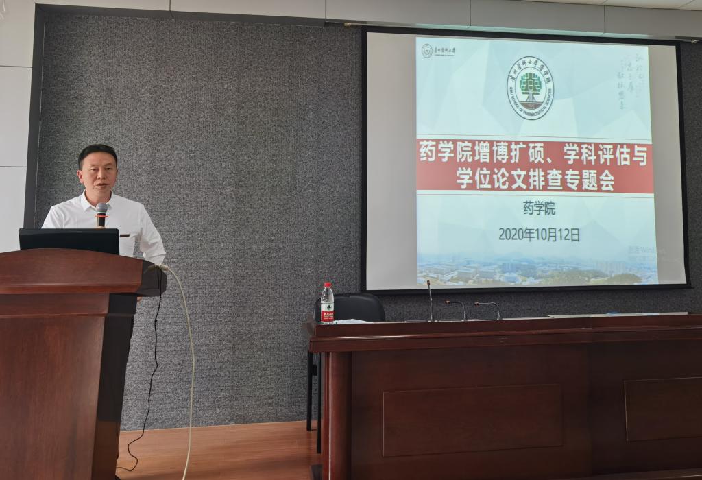 汤磊从论文排查、学科建设、学术交流和人才建设等四个方面对药学学科的扩博和学科评估作了讲话,并提出工作要求。
