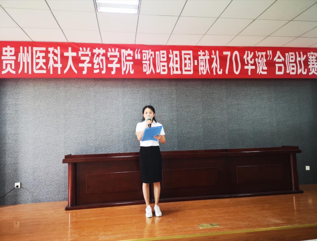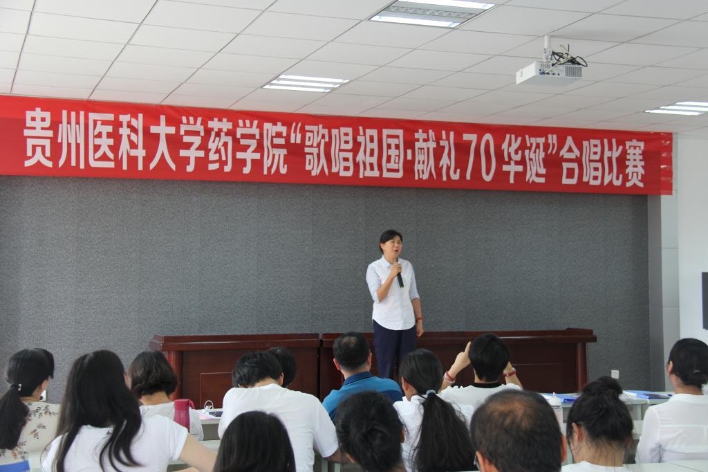 党委书记高秀丽总结发言,此次活动中,大家积极参与,每位选手都能够精神饱满,将自己对祖国的感情与祝福融入歌声,充分展现了不断发展中的药学风采,幸福感、自豪感随歌声流露,进一步增进了团结、增强了自信心。期望大家以此次活动为契机,以更强的使命感和责任感投入到中华民族伟大复兴和学校建设中。