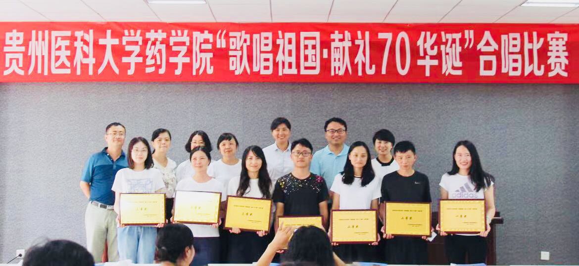 全体教职工按学科分为7组队参加了比赛,演唱曲目为《我和我的祖国》《年轻的朋友来相会》,比赛中,大家热情高涨,掀起一轮轮高潮。经过激烈角逐,药物分析学科组获得歌唱比赛一等奖,行政组、实验中心组获得二等奖,临床药学学科组、生药中药学学科组、药剂学学科组、药物化学学科组获得三等奖。学院领导为获奖组一一颁发奖牌。