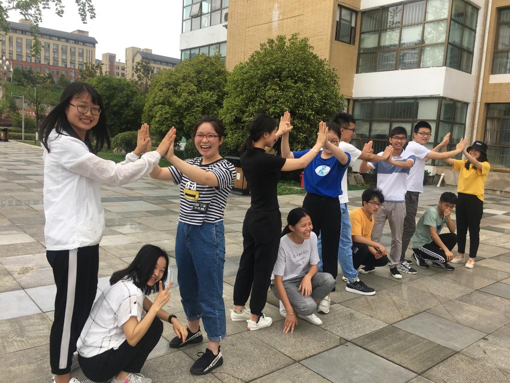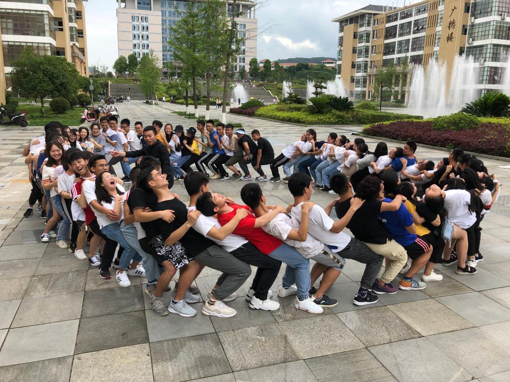 活动中,同学们参与了“森林大作战”、“万里长城(皇后椅)”等素质拓展项目,进一步增强了大家的凝聚力和协作力。最后开展的纳斯卡巨画项目,团队成员被分成六个小组,各小组通过对巨画局部的绘制,共同拼凑了一幅具有特殊意义的“青春不散场”巨型图画。