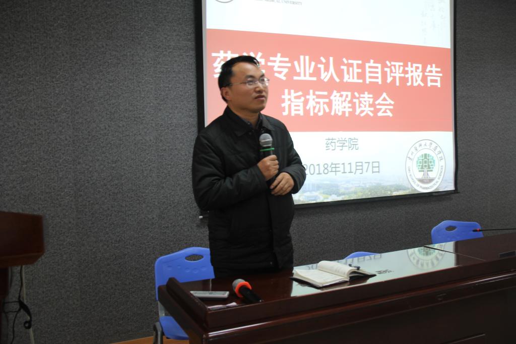 最后,医药卫生管理学院党委书记钟良、院长汤磊、药物制剂重点实验室办公室主任郑林等讲解了各自药学专业认证的工作情况,并全体讨论了专业认证工作的具体环节。