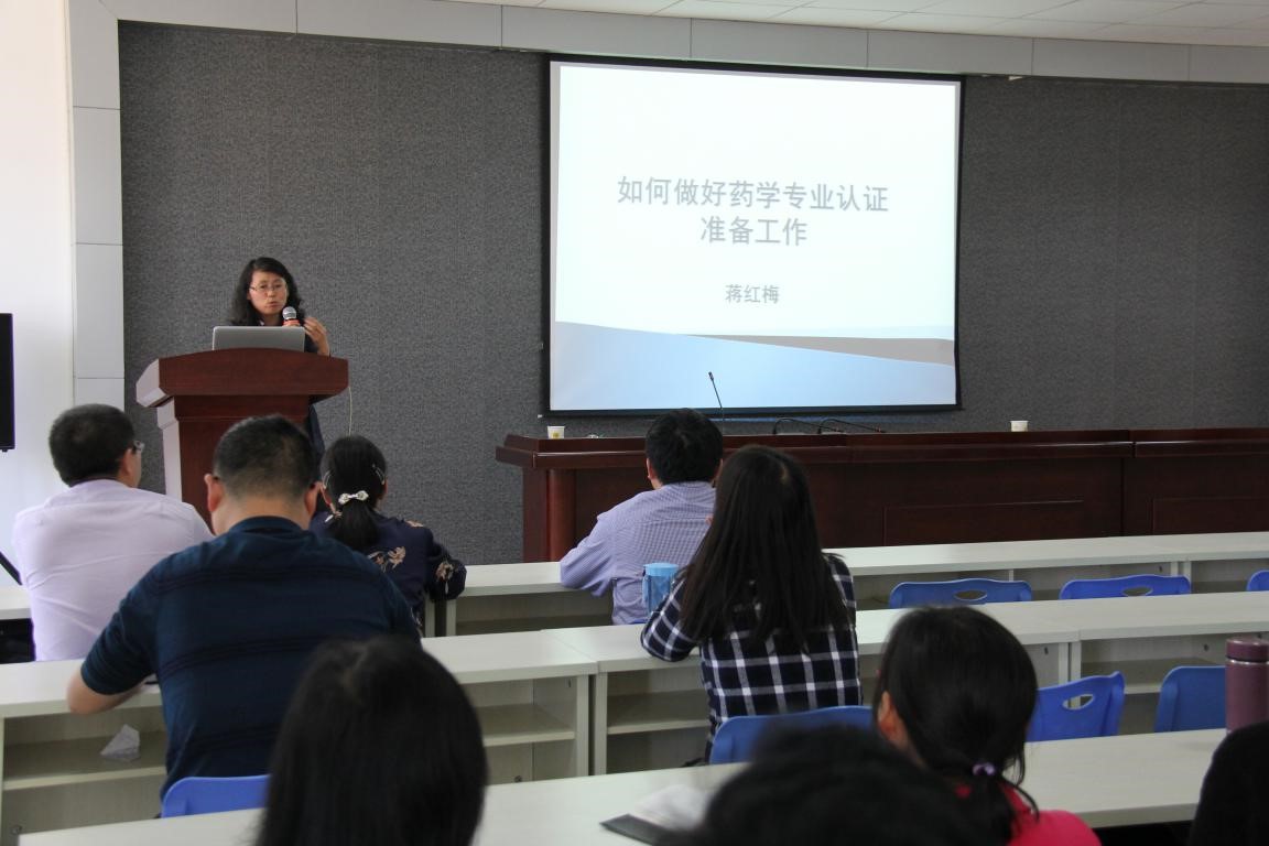 蒋红梅书记结合taptap点点本科教学工作审核评估和临床医学专业、护理专业认证的工作经验,以“如何做好药学专业认证准备工作”为题做专题辅导。
