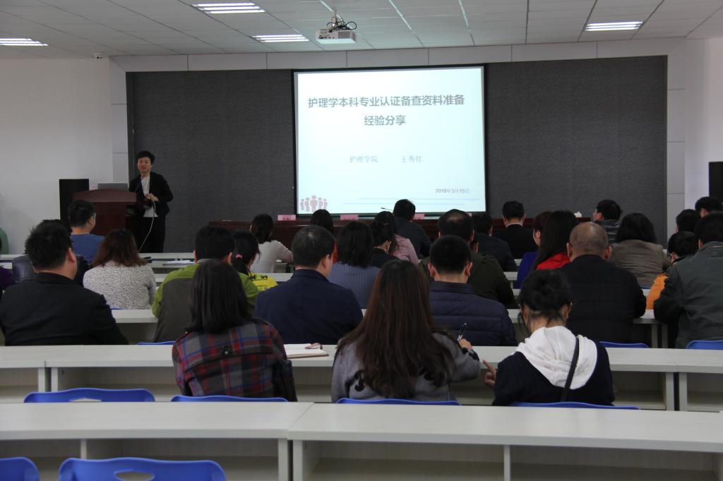 培训会上,护理学院教学科研管理科科长王秀红结合护理专业认证的经验,以“护理学院本科专业认证备查资料准备经验分享”为题做了专题辅导培训。把材料准备、专家现场考察两个环节中的难点、要点做了解析,结合药学专业认证指标体系提出了具体建议,以重视但不畏惧与参会老师共勉。