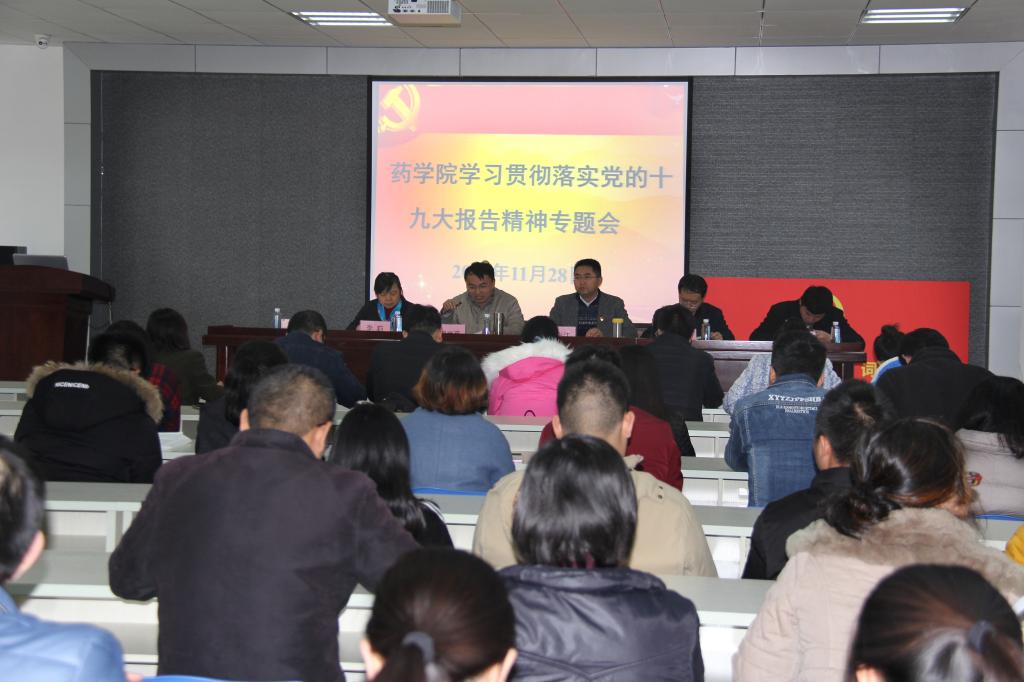 党委委员李莉传达并部署药学院学习贯彻落实党的十九大精神十项系列活动。对各项活动的时间、人员安排、开展情况、工作要求予以部署。