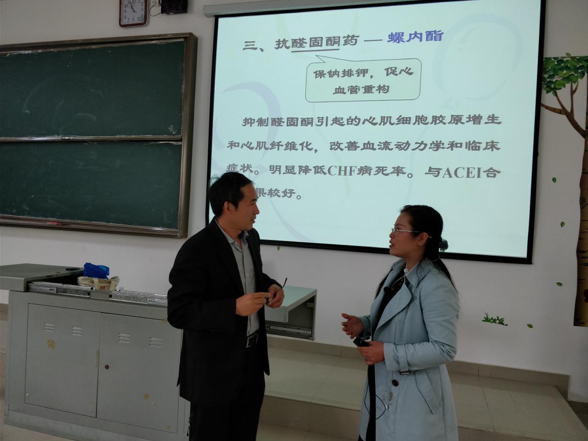 两位专家走进课堂,认真聆听了张晴老师的药理学课程、刘丽娜老师的药剂学课程,课后与老师进行亲切交谈,并对课程讲授提出了建议和意见。
