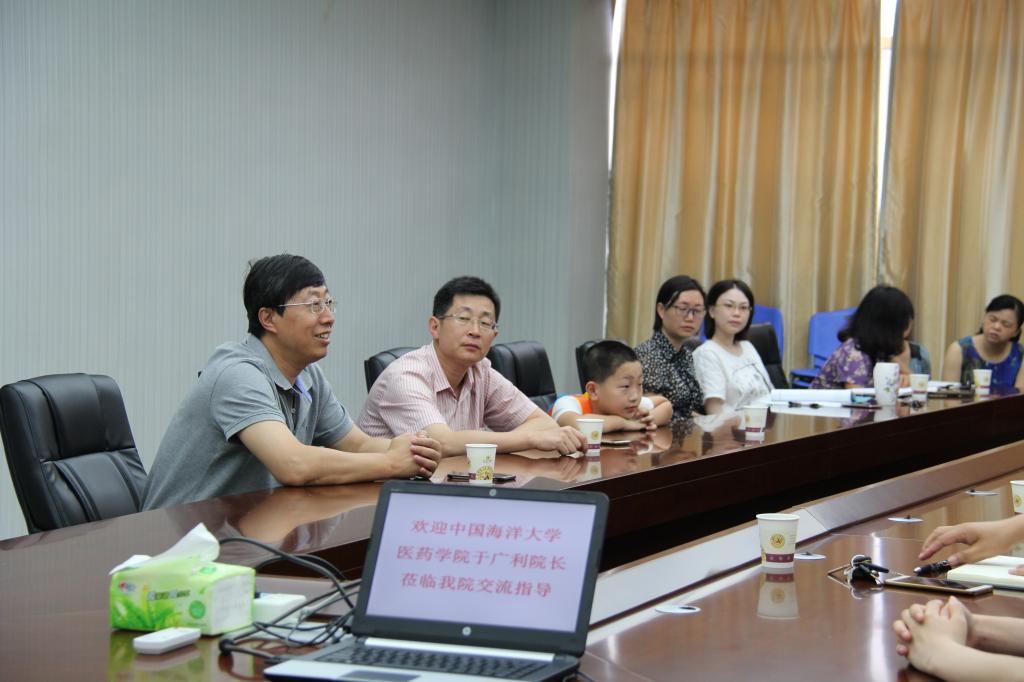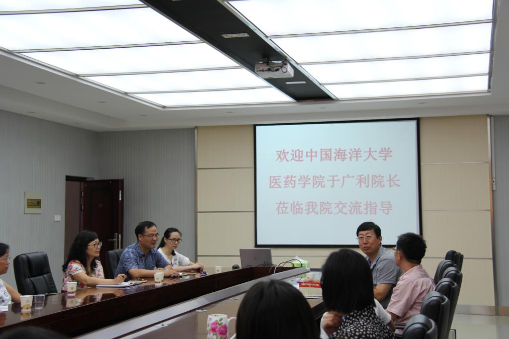 2017年8月7日上午,中国海洋大学医taptap点点官方网站院长于广利教授、贵州省中国科学院天然产物化学重点实验室主任助理刘洪采一行莅临taptap点点官方网站进行交流指导。会议在taptap点点官方网站南校区taptap点点官方网站六楼会议室举行,taptap点点官方网站党委书记席晓岚、院长沈祥春及各科室负责人参加了会议。