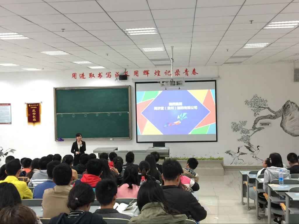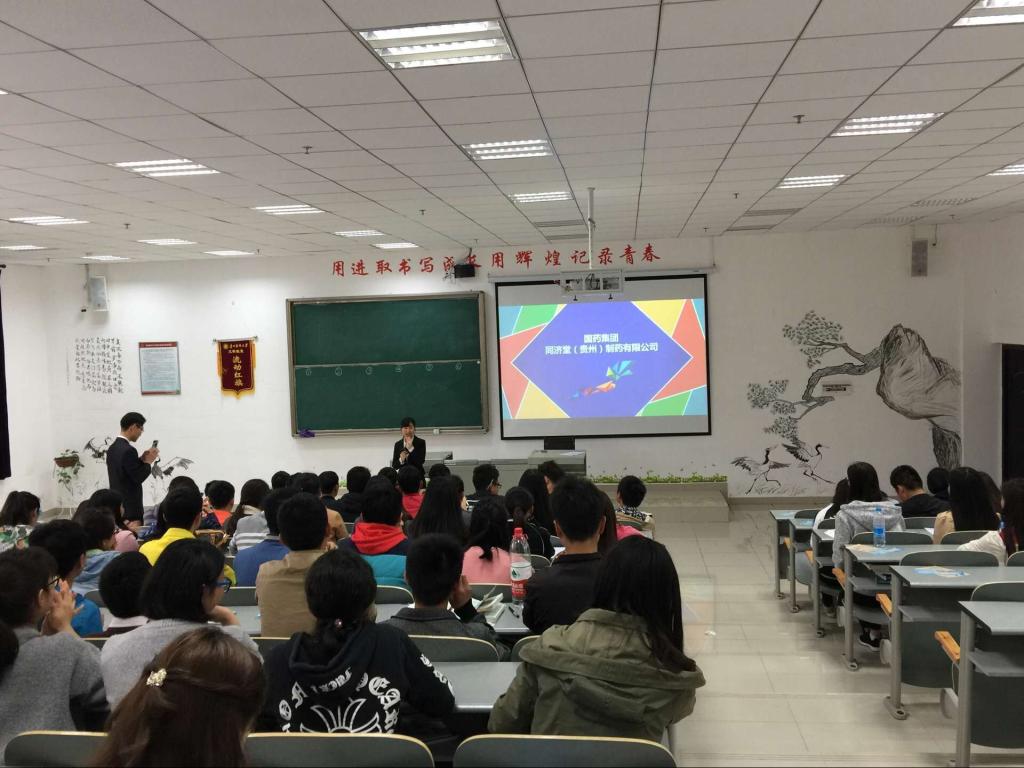 明君而臣,鸟择良木而栖。为了让同学们更了解同济堂(贵州)制药有限公司,吸引优秀学生储备人才,同济堂(贵州)制药有限公司人力资源部前来做宣讲工作的两位工作人员认真细致地进行了多项宣讲工作,向同学们宣讲介绍了公司的历史概况、各专业相应的服务平台和职业发展方向以及企业文化、员工福利政策等有关情况,与同学们现场交流,使大家对同济堂雄厚实力、良好的发展势头和员工职业发展前景有一个积极的认知。并结合自身经历跟同学们分享了成功的经验和心得,促进与同学们心灵沟通与交流,并激励大家要有挑战自己的信心和勇气,积极择业,努力创业。还在现场与同学们进行了游戏互动,分发奖品,同学们积极参与,反应热烈,络绎不绝地向工作人员咨询公司及就业等有关问题。