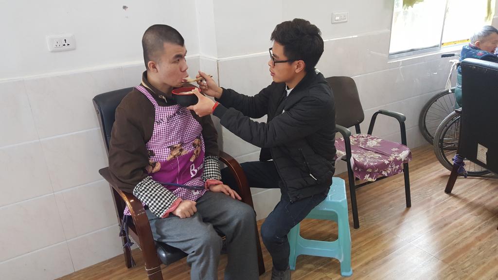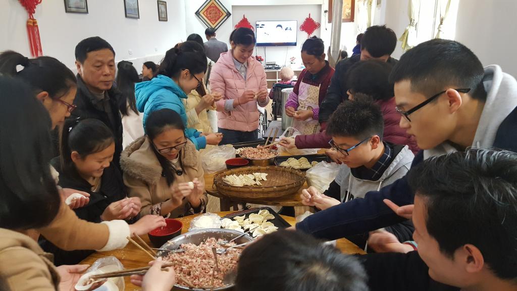 此后,同学们挽起袖子包饺子,并在煮好后亲手喂给行动不便的老人。