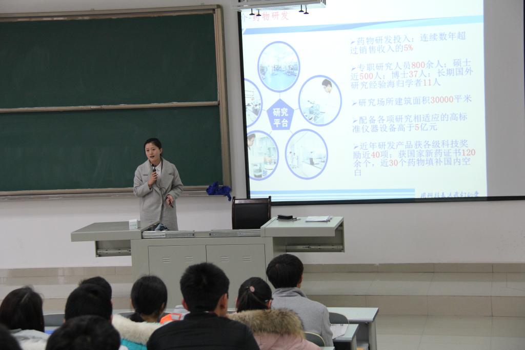 3月9日,我院特邀请了齐鲁制药有限公司为我院2017届毕业生作第四场就业推介会,该公司贵州省区经理任志、研发生产技术经理杨远华、学术推广经理姚雪等一行六人作就业推介,80余名毕业生参加推介会。