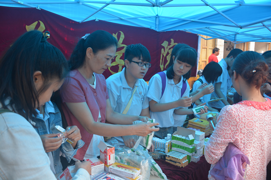 本次活动发放了价值贰仟余元的三十多种常用药品、宣传资料近万册,完成有效的调查问卷160余份。