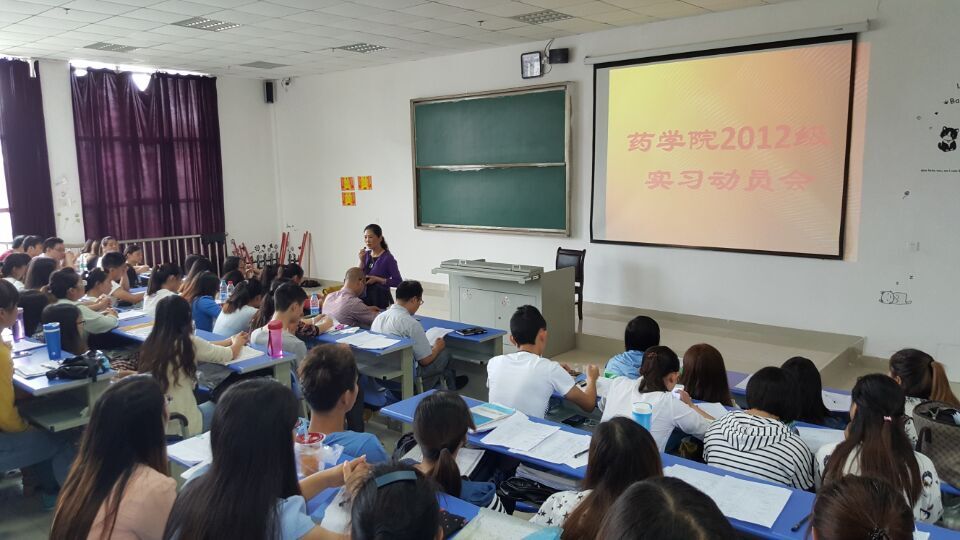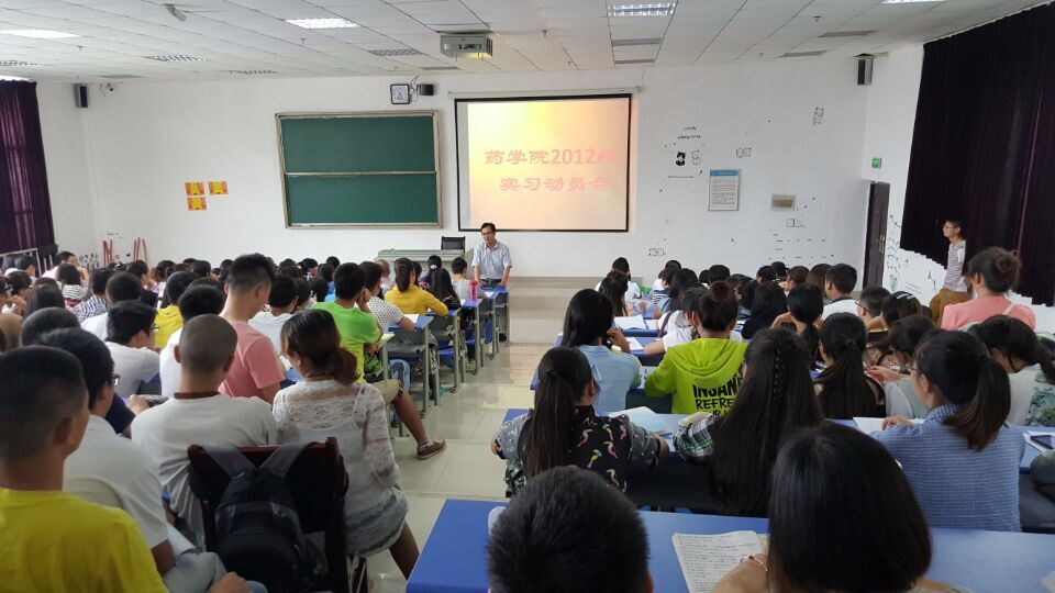 2015年6月18日上午taptap点点官方网站2012级药学和药物制剂专业实习动员大会在新校区1号教学楼1602教室召开。taptap点点官方网站党委副书记徐贵荣、常务副院长沈祥春出席,教学科研科科长刘兴赋、12级辅导员万玲曦老师及12级全体学生参加了动员会。会议由2012级辅导员万老师主持。
