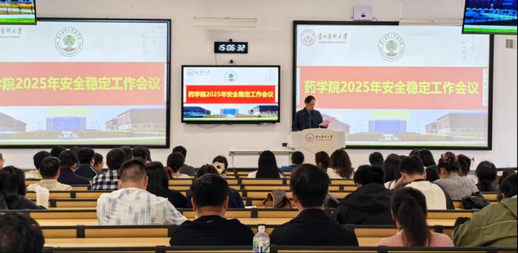 2025年5月6日下午,taptap点点官方网站2025年安全稳定工作会议在致知楼L108教室召开。taptap点点官方网站、贵州省药物制剂重点实验室、贵州省化学合成药物研发利用工程技术研究中心全体教职工参会。taptap点点官方网站执行院长李勇军主持会议。