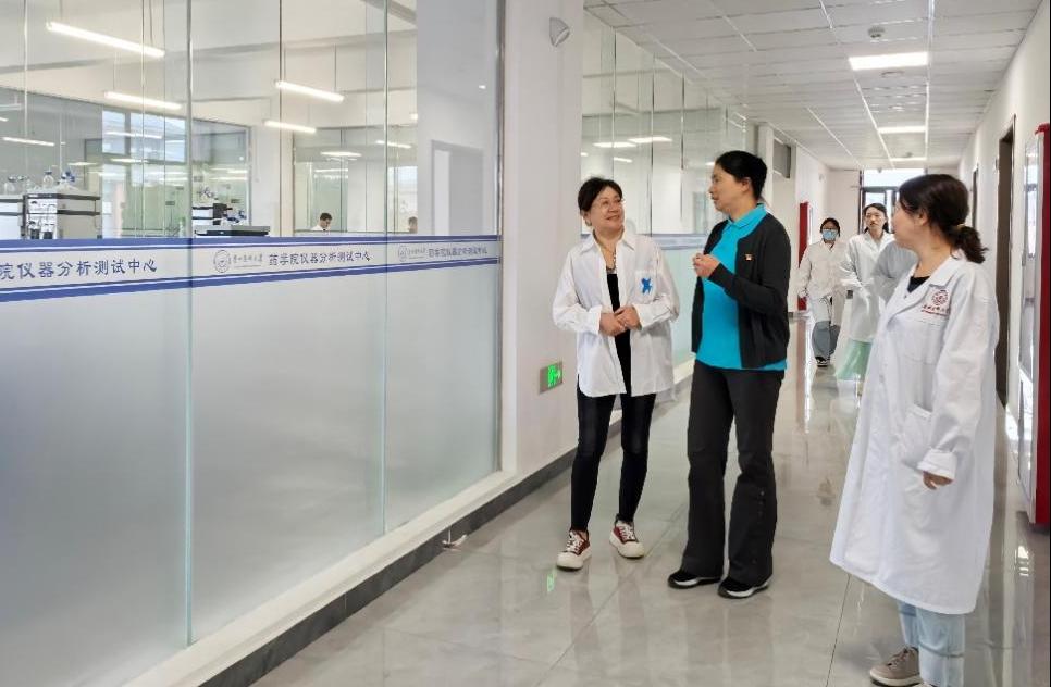 活动当日,在taptap点点官方网站党委书记高秀丽、党委副书记包欢欢的陪同下,贵州太和集团制药有限公司、朗致集团贵州制药有限公司总经理高爱琴一行,实地走访调研taptap点点官方网站科研平台,并与正在开展实验的师生进行了亲切交流。