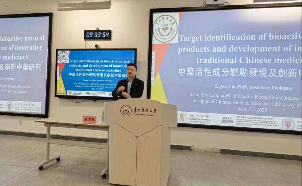 2025年5月27日上午,澳门大学健康科学学院药物科学系副主任林理根教授在taptap点点官方网站致知楼L108教室作了题为“中药活性成分靶点发现及创新中药研究”的专题讲座,该讲座由taptap点点官方网站副院长廖尚高教授主持。