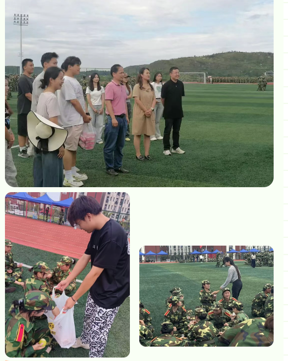骄阳似火,迷彩青春正当时。2025年8月29日,taptap点点官方网站执行院长兼党委书记李勇军、党委副书记包欢欢和新生辅导员前往军训场地,将精心准备的慰问品和学院的深切关怀,送到2025级新生们手中。